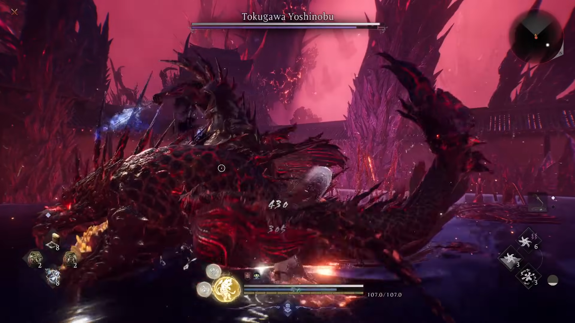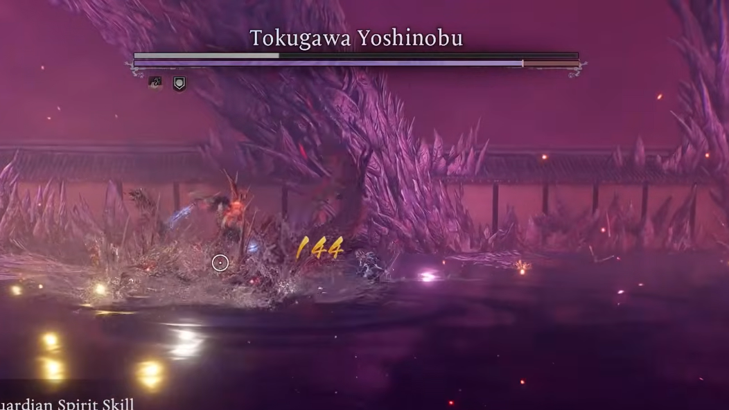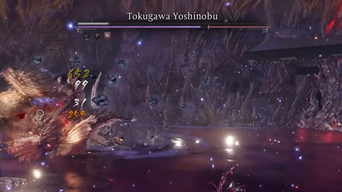 Because Yoshinobu counts as a human enemy, parry-focused weapon skills are extremely effective if you can nail the timing. Parry perks in particular can punish his attacks hard, turning his relentless offense into a liability.