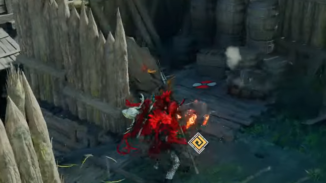 | Aerial smoke leap | He leaps up and fires into the air, raining projectiles down on your position. | This is the cue for Nature's Snare Retribution. Redirect the shots back at him. |