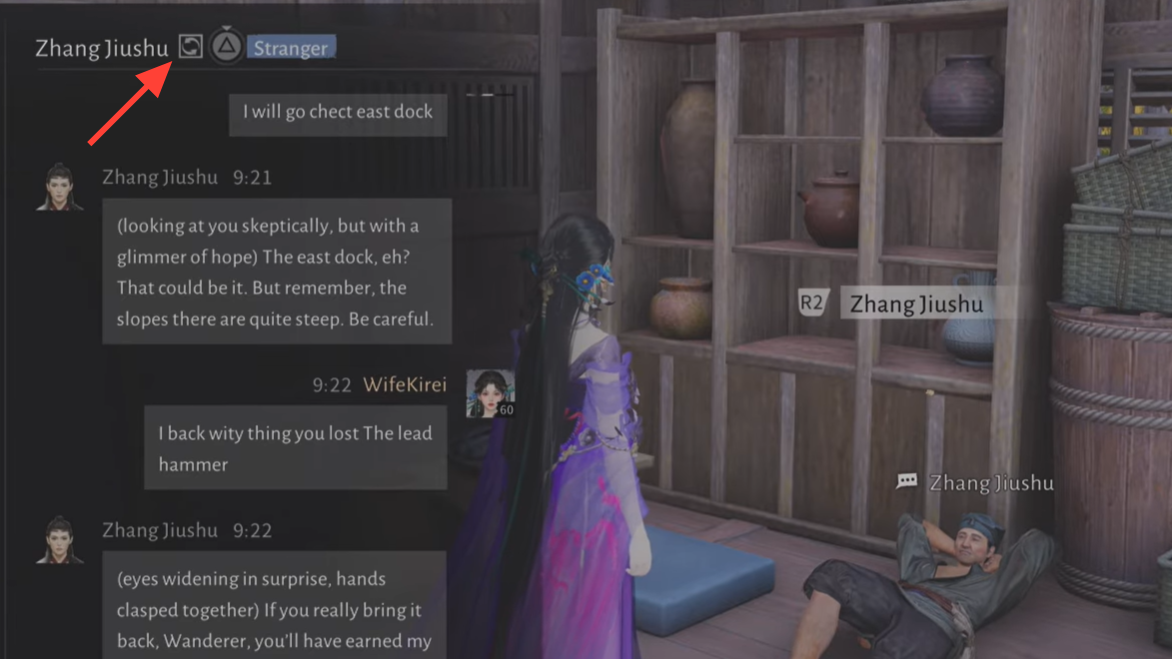 Step 1: Start AI Chat with Zhang Jiushu at Heaven’s Pier. Make sure you are in the AI Chat interface, not ordinary dialogue.