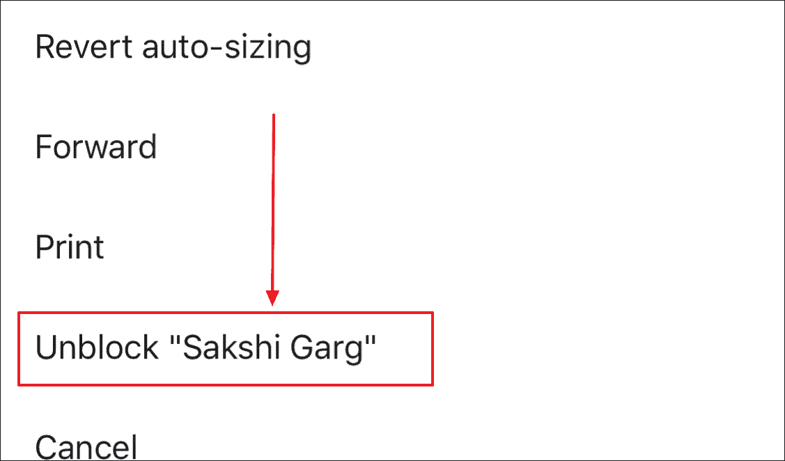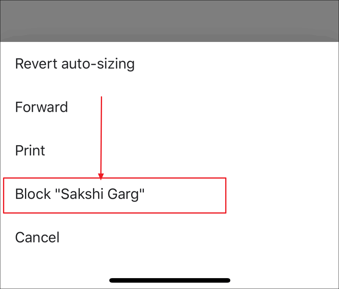 Step 4: A menu will appear with several options. Select Block <sender name> from the list.