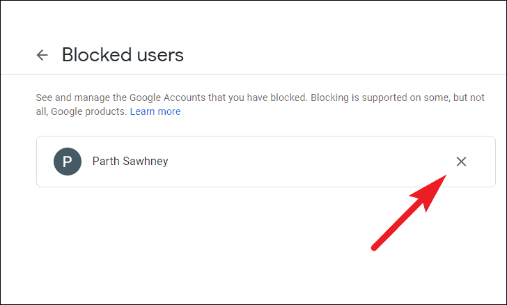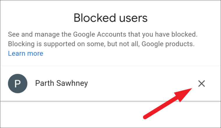 Next, click on the ‘X’ icon present on the far right edge of each blocked user’s tile.