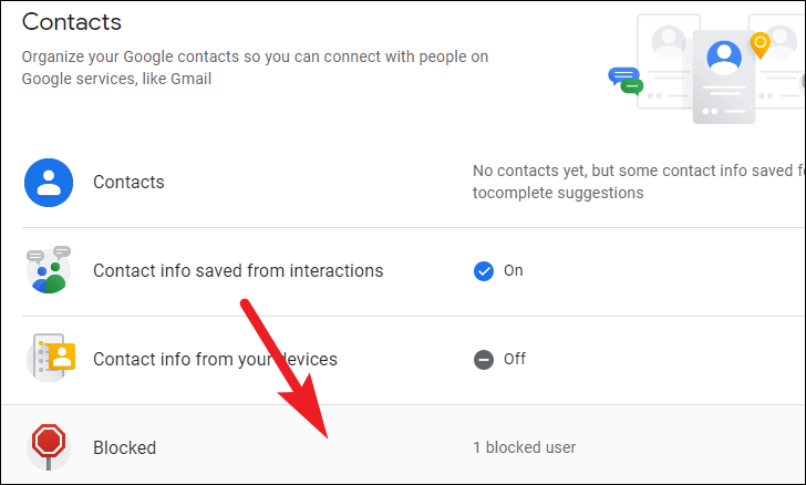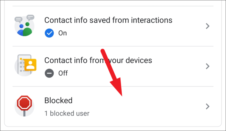 After that, scroll down till you locate the ‘Contact’ section and then click on the ‘Blocked’ option situated under it.
