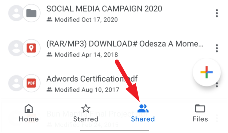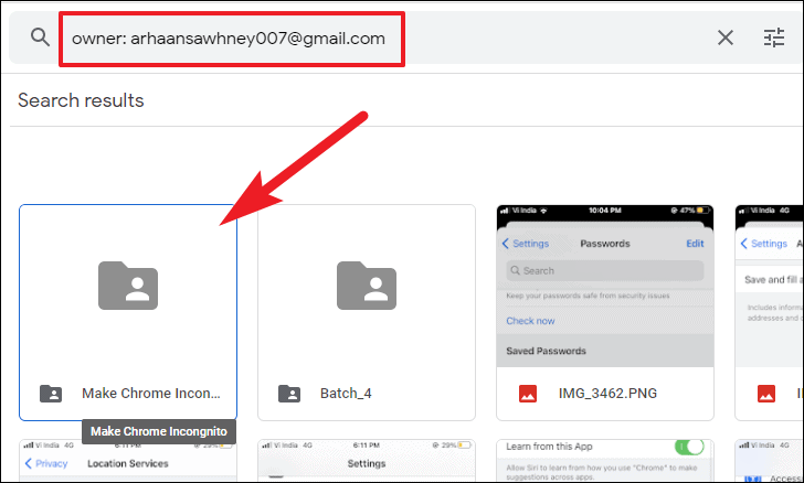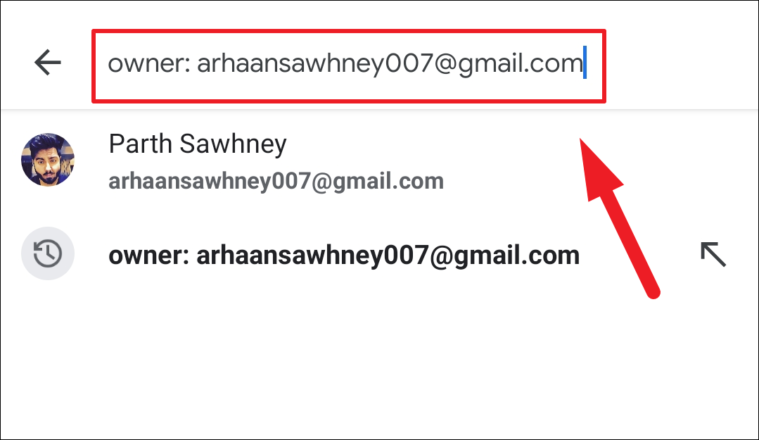 In case you are not able to locate the file, tap on the ‘search’ icon present on the top section of your screen. Then type owner: <contact name/ email address> and hit the search button present on the bottom right corner of your keyboard.