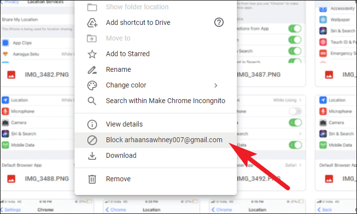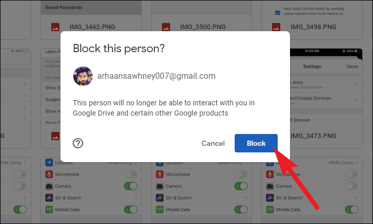 Now, click the ‘Block’ button to block the person from sharing any files with you over Google Drive.