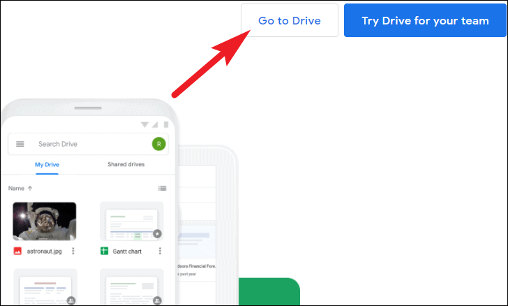 To do so, head to drive.google.com using your preferred browser on your Windows or macOS device. Then, if not signed in click on the ‘Go to Drive’ button present on the webpage and sign in to your Google account.
