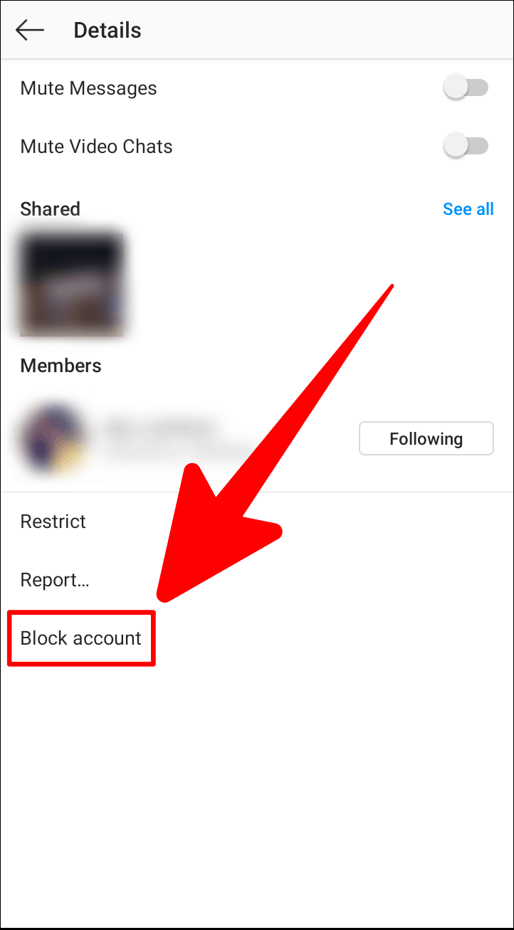 The ‘Details’ screen would now appear. Look towards the end of the screen and you would find a ‘Block account’ option. Tap on it.