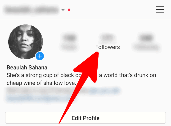 If you’ve forgotten what the person’s name is and you need to look for them in your ‘Followers’ list, open your Insta profile page. Then tap on the ‘Followers’ option in the same row as your profile picture.