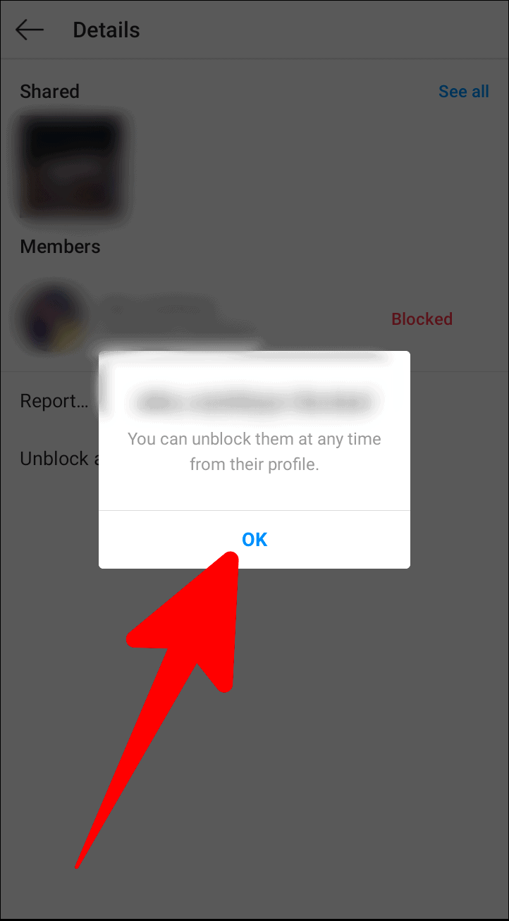 You will also receive a confirmation prompt once you’ve unblocked the person. Tap on ‘OK’.