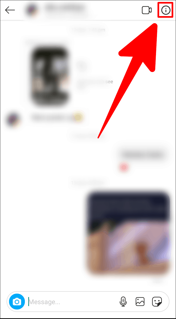 You can also block someone on Instagram directly from the Chat. Open the Insta chat of the person you will be blocking and tap on the ‘i’ icon on the topmost right corner.