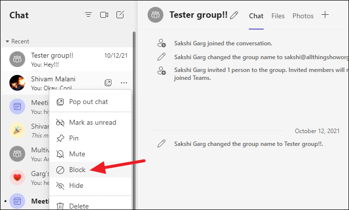 Blocking Someone on Teams