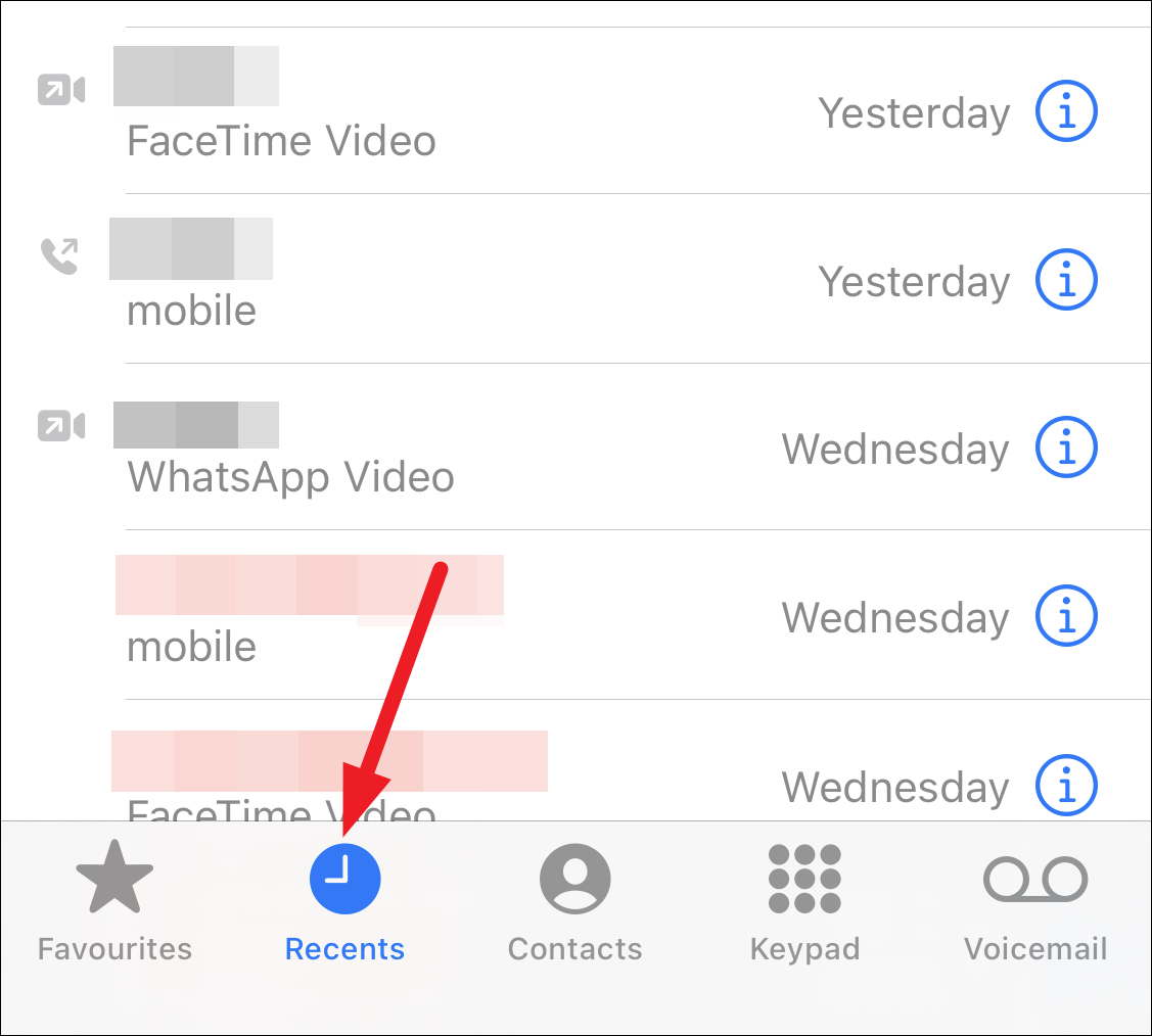 Open the Phone app and go to the ‘Recents’ tab from the bottom of the screen.
