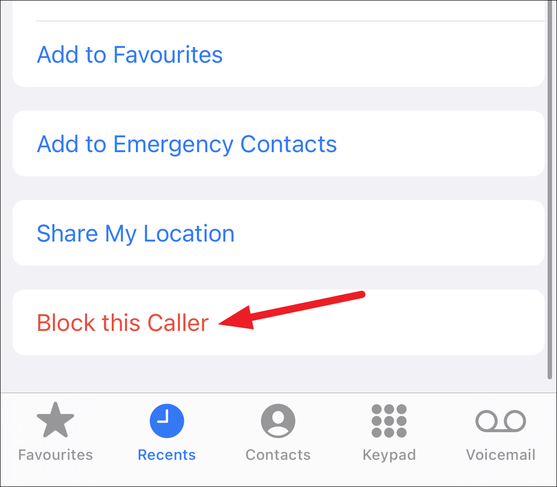 Scroll down on the contact information page, and tap ‘Block this caller’.