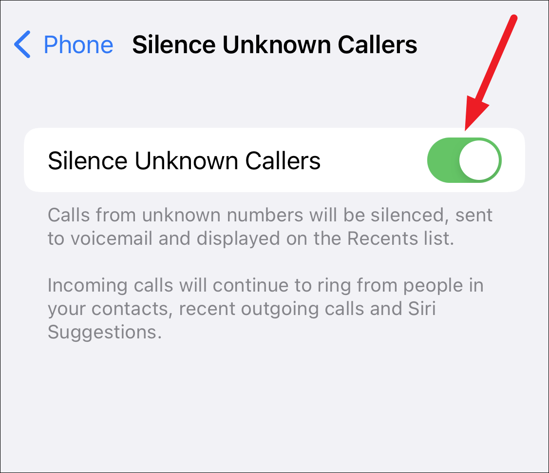 iPhone also offers the option to silence unknown callers. Although this can be a drastic option for some, it can silence almost all unknown callers. When this option is enabled, iPhone will silence the unknown callers and send them directly to the voicemail. You’ll also be able to see them in your Recents list.
