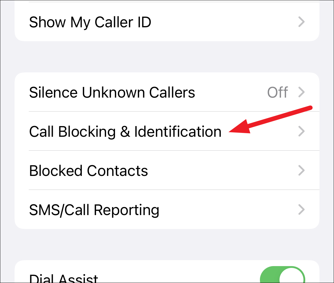 If you look right under the Silence Unknown Callers feature, you’ll also find a ‘Call Blocking and Identification’ feature. This option is the perfect setting to block spam calls, but only for certain users.