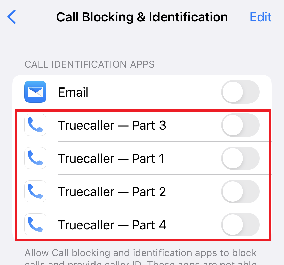 In Phone settings, open ‘Call Blocking and Identification. Additional settings with Truecaller’s name will appear. Enable the toggle for all the available options to enable spam detection.