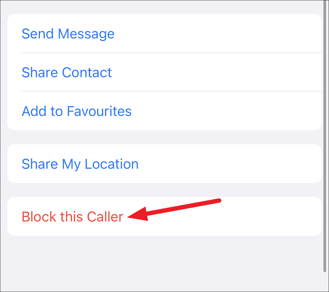 Scroll down and tap ‘Block this Caller’ to block them.