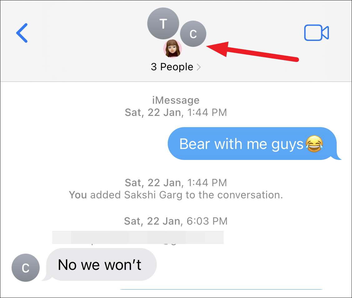 If by some stroke of luck, the spam group that you’ve been added to is an iMessage group, you can simply leave it. Open the group chat and tap the ‘People’ icon at the top.