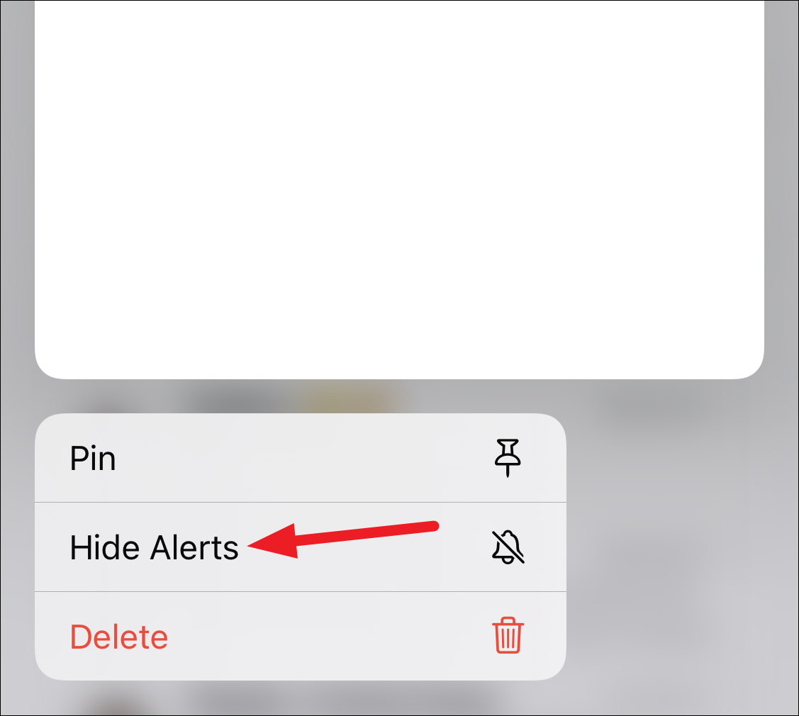 Or, tap and hold the conversation thread until a few options appear underneath. Tap the ‘Hide Alerts’ option.
