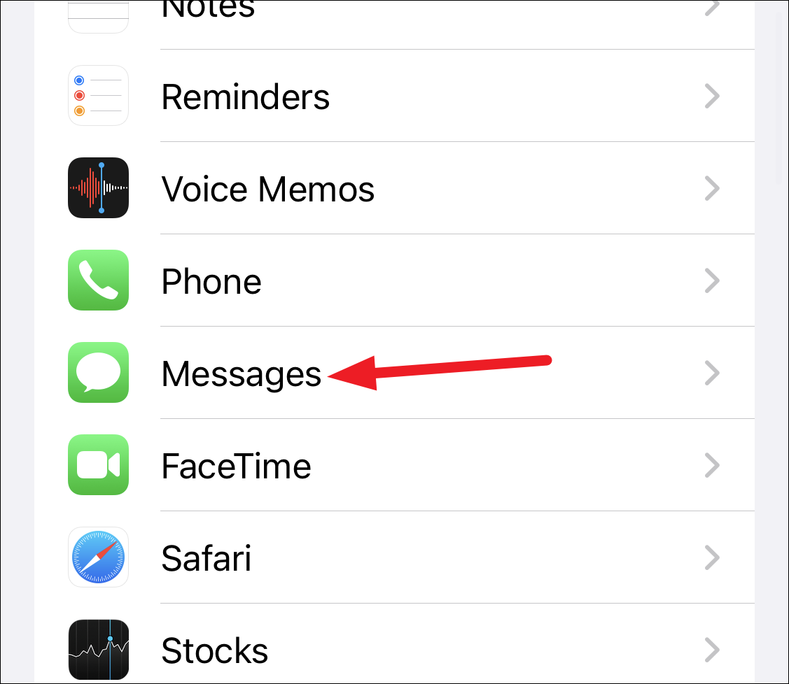 To enable spam filtering, open the Settings app. Then, scroll down and tap the option for ‘Messages’.