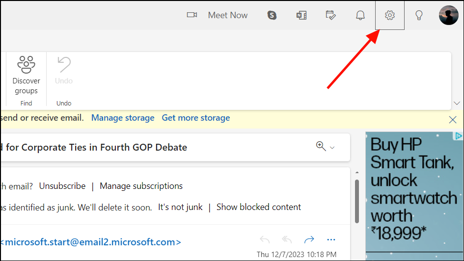 - Open your Outlook app and find the junk you'd like to use to create a rule.