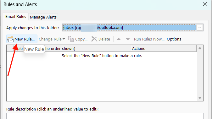 - In the Rules & Alerts wizard, click the 'New Rule' button.