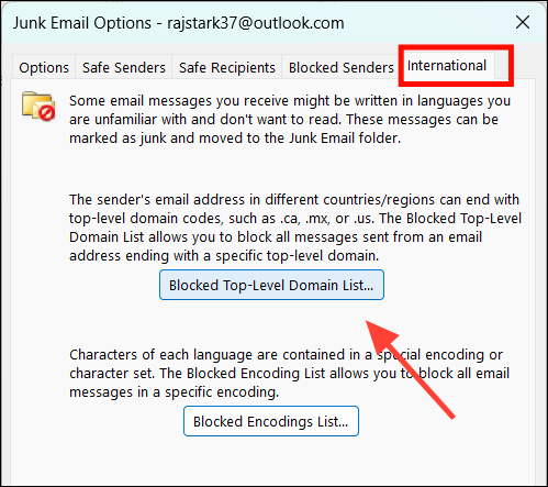 If you're getting emails from unfamiliar countries or obscure domains, especially when you have no connections or business dealings in those countries, you can block emails from those regions or domains in Outlook. This can help filter out potential spam. Here's how: