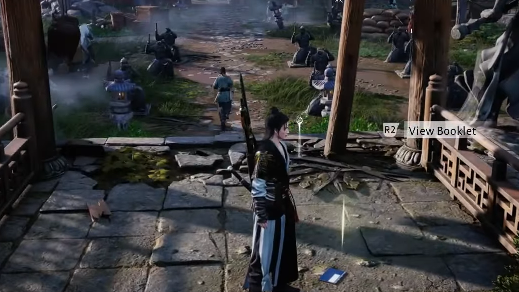 Echoes in the Shrine is a Lost Chapter Quest that begins at the General’s Shrine in Qinghe. You pick it up by talking to Zhang San, the man kneeling and repeatedly kowtowing in front of the shrine’s altar. After you check on him, he collapses, you wake him up, and he eventually storms off, leaving behind a fake martial arts book on the ground.