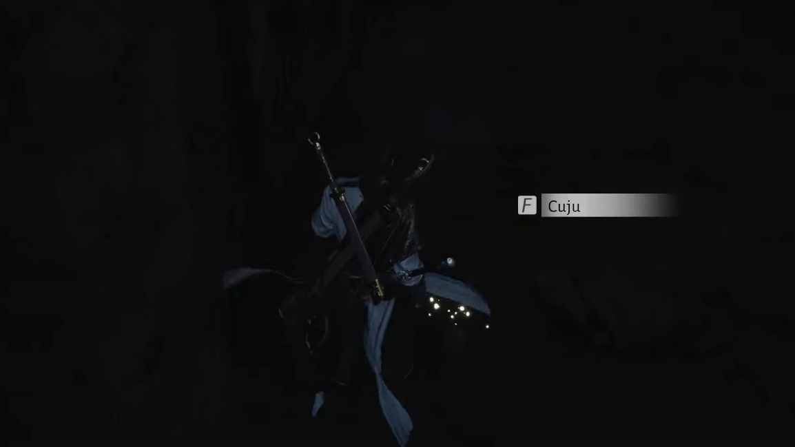 Dropping through the slab puts you in the deep cave that the boy mentioned. As soon as you land, the game briefly limits some of your traversal abilities, indicating that you “can’t muster your strength” here. Lightness Skills, climbing, Wallstride, and mounted riding are restricted inside this cave, so you have to progress mostly on foot along the ground.