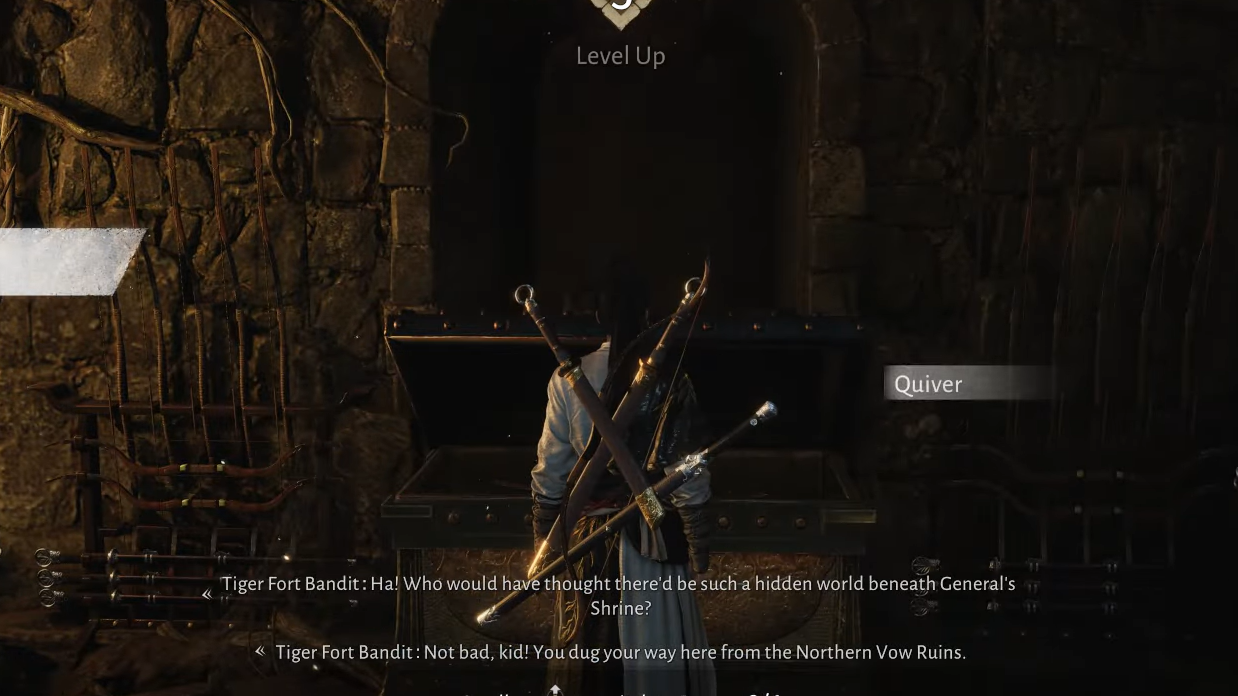 Step 4: When performed correctly, the slam shatters the suspicious floor and drops you into the first level of the deep cave beneath the General’s Shrine, updating the quest objective to explore this underground area.