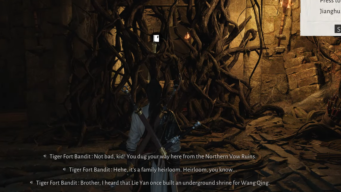 - Burn vines, light an oil lamp, and continue exploring toward the underground shrine and the eventual boss encounter with Zhang Lang.