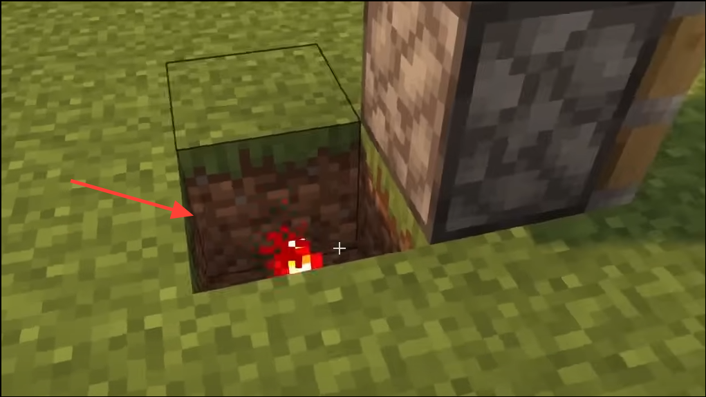 Step 1: Dig a trench that is 2 blocks long and 1 block deep immediately next to where the door will sit. Keep the trench parallel to the doorway.