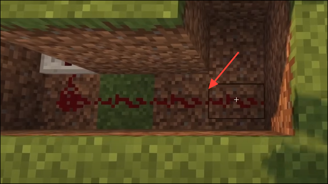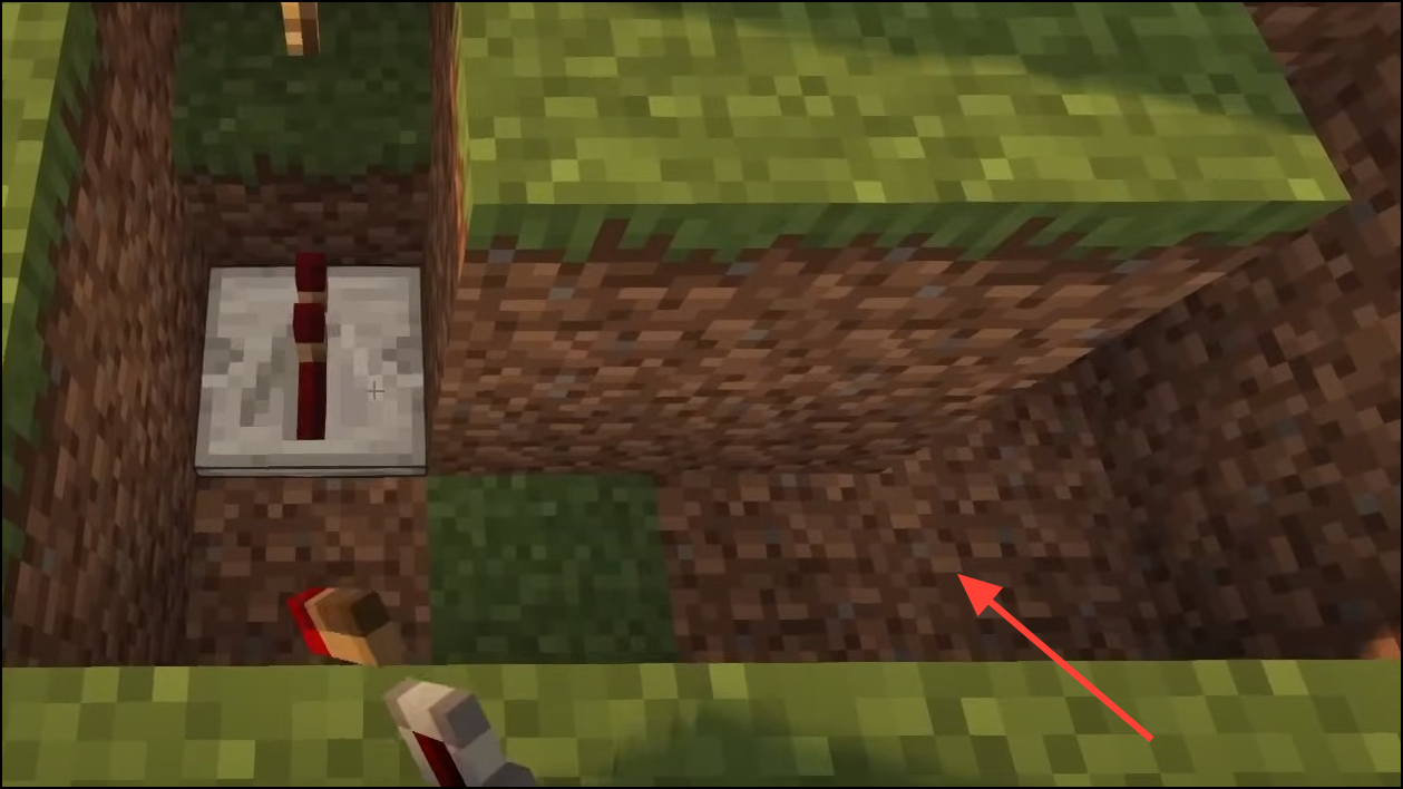 Step 7: Run Redstone dust along the bottom of the pit to link both sides, and place dust on each block above the torches. The pistons should extend by default, closing the “wall.”