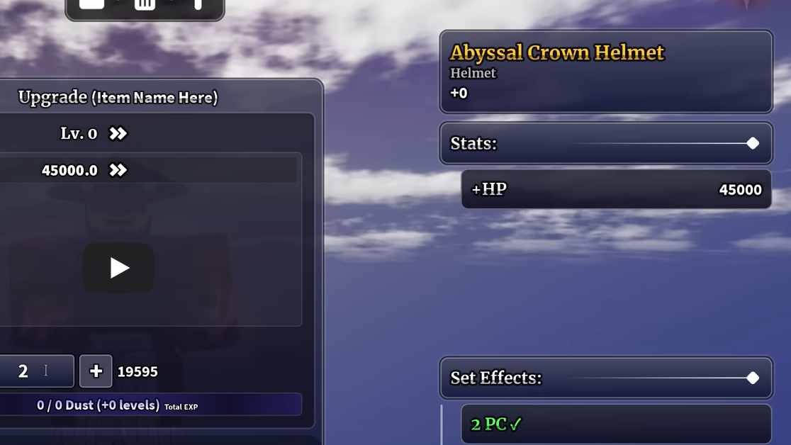 The Abyssal Crown set is the go-to for the maximum-damage build. Celestial Rupture, Black Horizon, and Void Reaver are also strong alternatives because their set bonuses lean into crit and damage scaling. Aim for Legendary rarity on every piece — Common through Epic versions simply don't provide enough stats to compete at endgame.