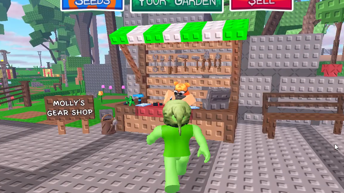 The Harvest Bell is located in the game’s central hub. Players can reach this area by navigating to the Fountain, which is also accessible via the Seed button in the interface. Once in the hub, locate the Gear Shop and interact with the NPC named Molly by pressing the E key.