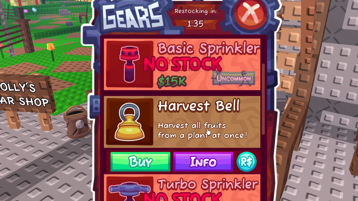 Quick answer: The Harvest Bell is a rare tool sold at the Gear Shop in the Fountain area for $35,000 or 79 Robux. It allows players to instantly harvest every ripe crop in their garden at once.