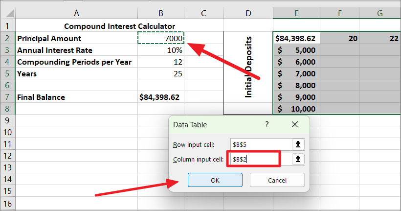 Calculate Compound Interest using Two Variable Data Table