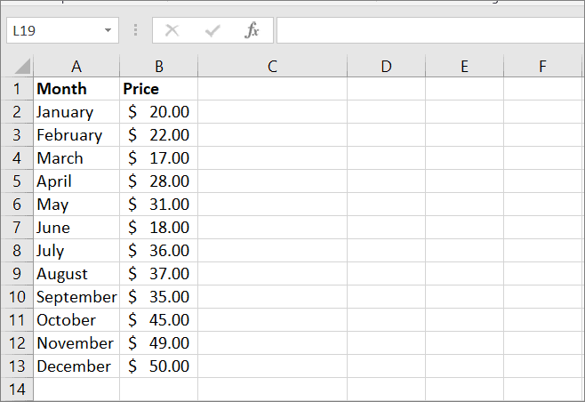 Let’s say you have one column of numbers that lists the monthly price of petrol for over a year.