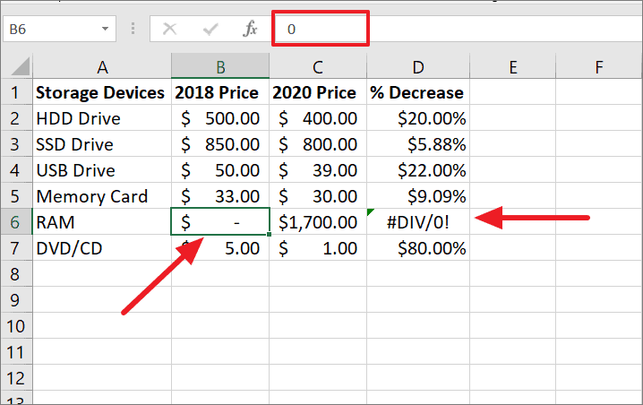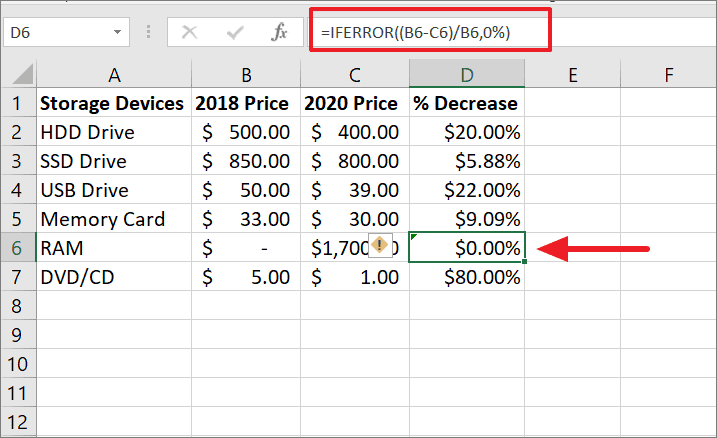 Let’s apply this formula in one of the error examples (#DIV/0! error):