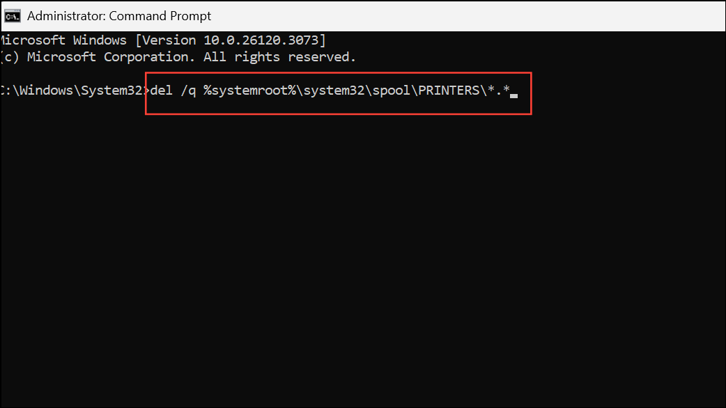 del /q %systemroot%\system32\spool\PRINTERS\*.*
