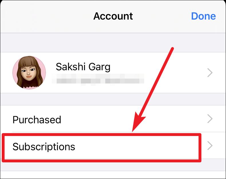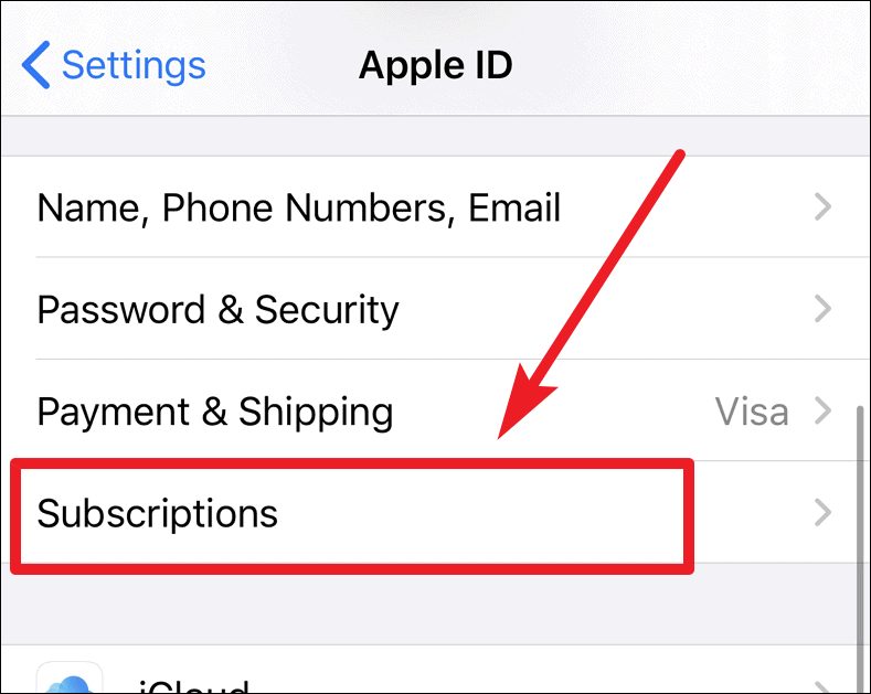 There, you will see the Subscriptions option. Tap on it. It will take a moment to load your active subscriptions.