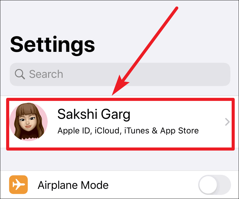 Another way to cancel a subscription is from Settings. Go to the Settings of your iPhone, and then tap on your Apple ID card at the top of the screen.