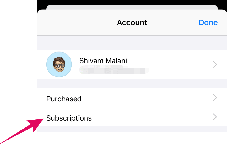 Tap “Subscriptions” on the Account screen to view all active subscriptions purchased from the App Store.