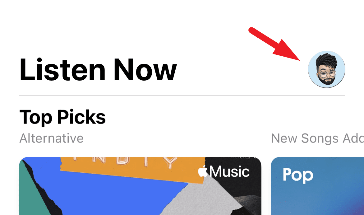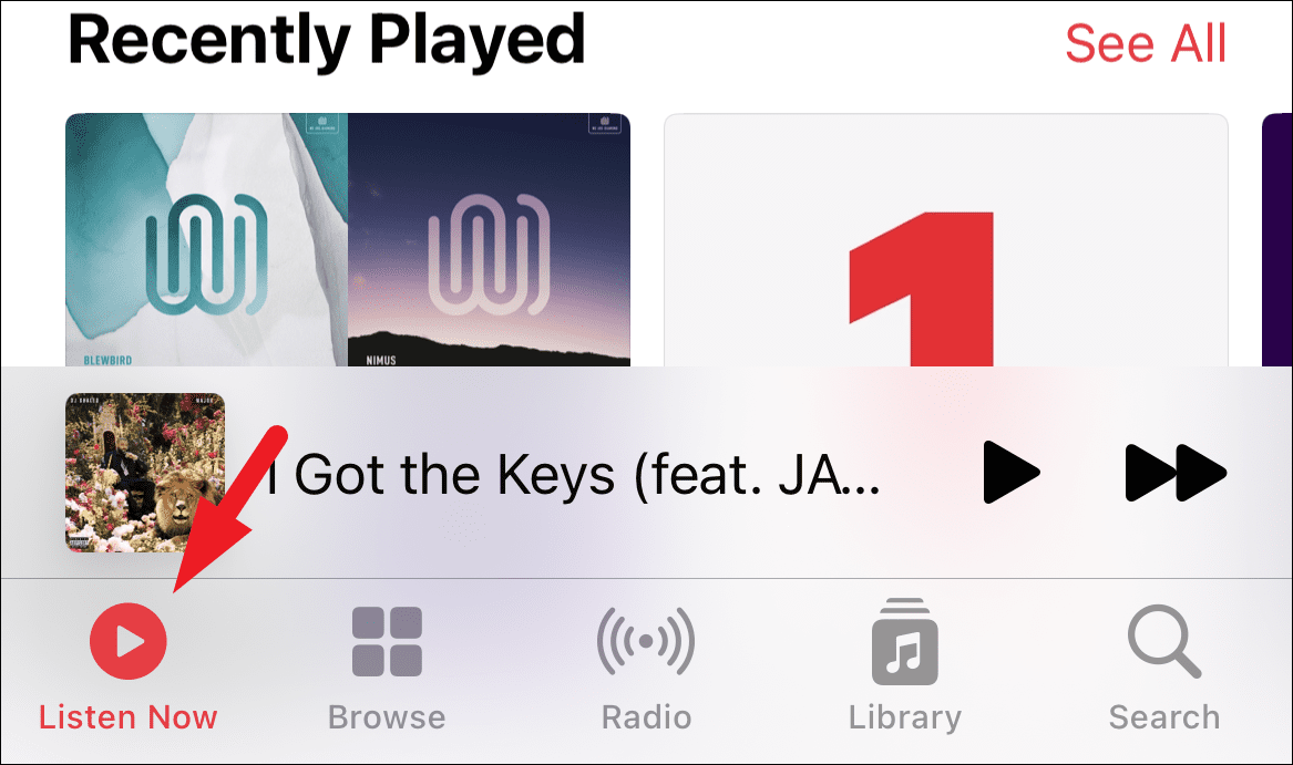 Next, make sure you are in the ‘Listen Now’ tab in the Music app.