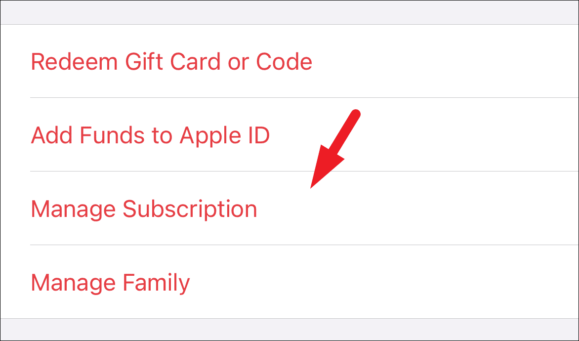On the next screen, locate and tap on the ‘Manage Subscription’ option.