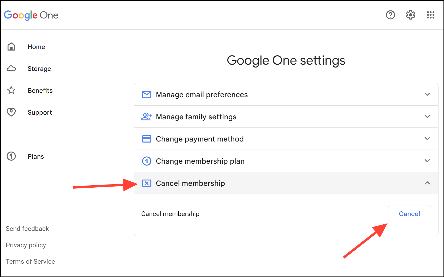 Cancelling through Google One Settings