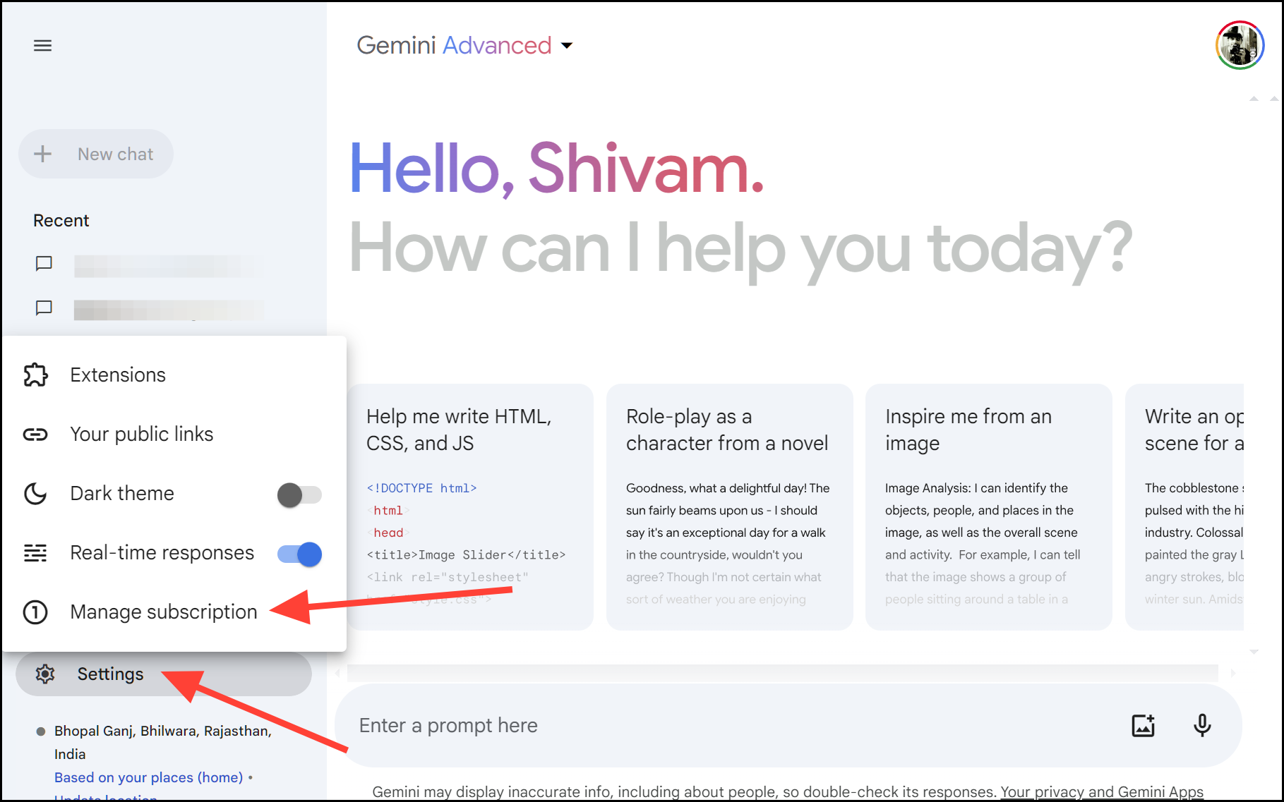 - Go to gemini.google.com and log in to your Google account.