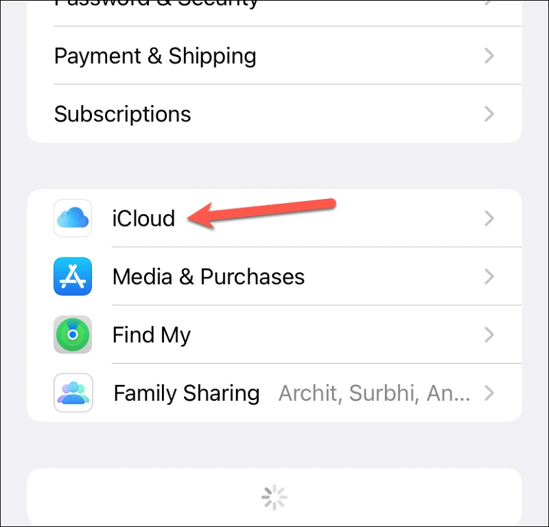 Tap the option for ‘iCloud’ from Apple ID settings.