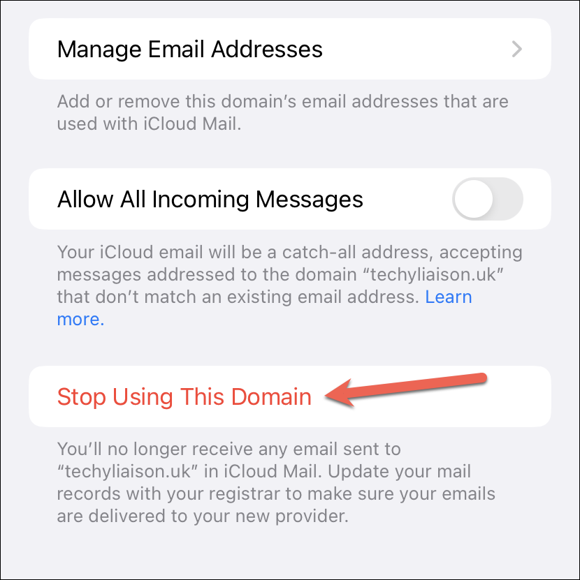 Now, tap the option for ‘Stop Using this Domain’ at the end.