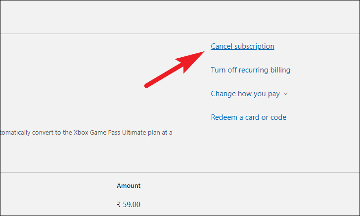 Next, click the ‘Cancel subscription’ option under the ‘Payment settings’ section to terminate your Xbox Game Pass. This will redirect you to another webpage.