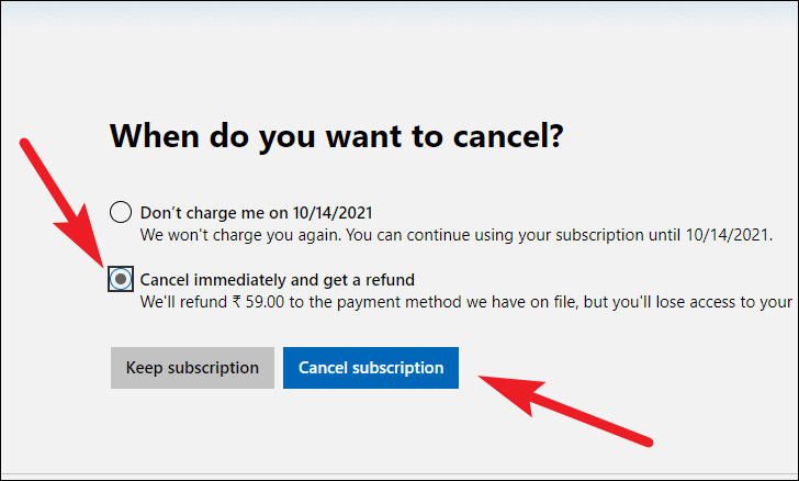 If you are canceling your subscription before 30 days of the next billing cycle, you can also choose to get a refund for the last billed amount – however, you will immediately lose access to your Xbox Game Pass. If you do not wish to get a refund you can enjoy the benefits till your next billing cycle date.